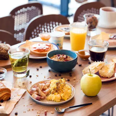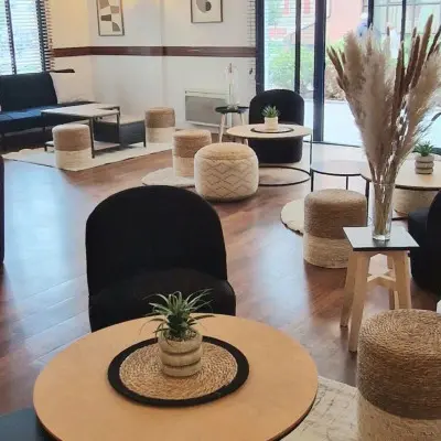 L'hôtel offre confort et commodité à proximité du centre historique. Le buffet petit-déjeuner met à l'honneur des produits de qualité. Parking 24h/24, accueil 24h/24 et animaux acceptés.Il dispose d'un bar lounge ouvert tous les jours jusqu'à 2H du matin et d'une restauration sur place avec carte de planches à partager, pizzas, bocaux de plats artisanaux de saison. Chambre tout confort avec 2 lits séparés ou 1 grand lit - TV, wifi gratuit, Salle de bain privative avec douche + necessaire hygiènePetit déjeuner buffet à volonté comprenant : boissons chaudes, pain au céréales, baguette, viennoiseries, produits laitiers, salade de fruits, fromage, jambon, céréales, jus de fruits, bacon, œufs brouillés, confiture, nutella, beurre…