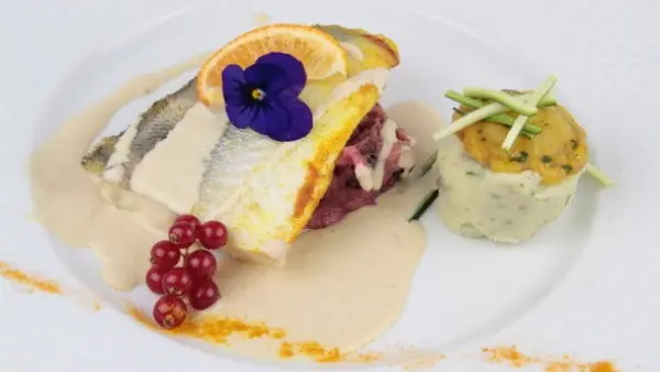 AMUSE BOUCHE : Dôme de foie gras sur pain d’épices, purée de mangue Blinis de saumon fumé, mouse de betterave et combavaTartelette forestière / MISE EN BOUCHE : Gourmandise de rouget et tourteau, fraicheur d’agrumes, chip de chorizo / ENTRÉE : Pavé de truite du pays de Bray, mirepoix de légumes, émulsion au Nouilly Prat / PLAT PRINCIPAL : Tournedos de boeuf aux trompettes de la mort, sauce périgueux,Gratin de pommes de terre au comté, fricassée de champignons / SALADE VERTE & FROMAGES AFFINÉS : Salade verte, Coeur de Neufchâtel, millefeuille de pomme, caramel au vinaigre de cidre / DESSERT : Mont Blanc au marron et insert mandarine / CAFE ET THE EAU PLATE ET EAU GAZEUSE, Jus d’orange, jus de pommes