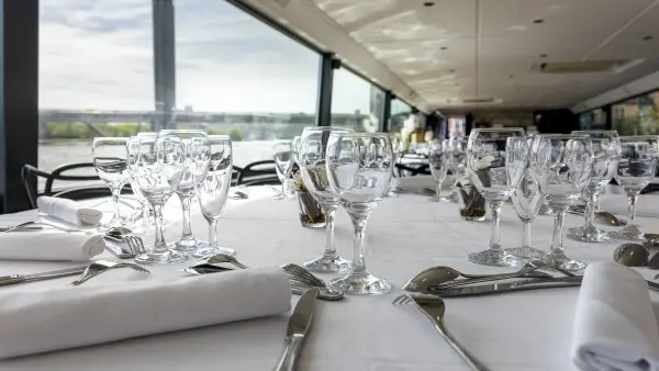 Pour sublimer ce moment à deux, savourez un menu de saison en 5 plats, spécialement imaginé pour la Saint-Valentin, mettant à l’honneur les saveurs locales et la finesse gastronomique. Une ambiance sonore élégante et feutrée accompagne ce déjeuner croisière, créant une atmosphère douce et romantique, idéale pour profiter pleinement des paysages et de cette parenthèse gourmande sur la Seine.