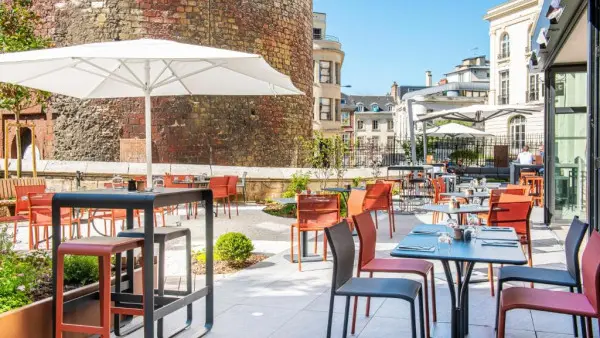 Situé en plein centre de Rouen, le restaurant Le Jehanne vous séduira grâce à sa cuisine faite maison et sa sélection de plats authentiques, préparés avec des produits frais et locaux.Venez profiter d'un moment de convivialité dans un cadre raffiné, teinté d'une pointe de charme historique grâce à la vue imprenable sur l'imposante tour Jeanne d'Arc.