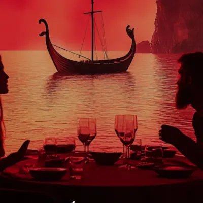 Pour une nuit seulement, la Cité Immersive Viking vous ouvre les portes d’un espace habituellement inaccessible : la Salle des Rêves, un lieu où les murs prennent vie sous un vidéomapping à 360°. Un jeu de lumières et d’images transporte les convives dans une ambiance envoûtante, rendant ce dîner encore plus magique.