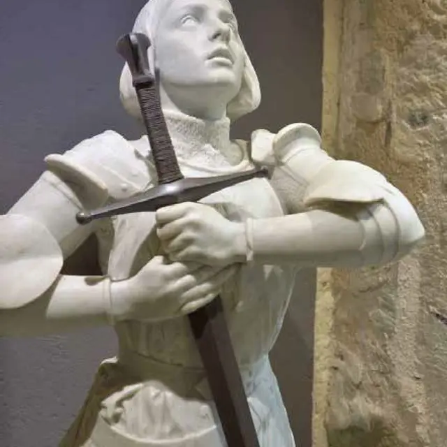 Dans la cathédrale (7), une chapelle est dédiée à la sainte dans laquelle une statue de Georges Saupique représentant Jeanne au bûcher et deux vitraux retraçant l’épopée de Jeanne ont été placés après la Seconde Guerre mondiale.