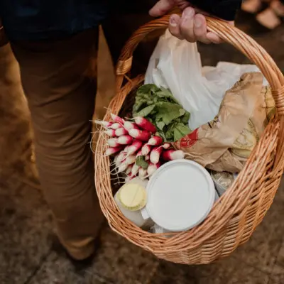 En fonction de la saison, vous pourrez déguster : huîtres, terrines, camembert, neufchâtel, fraises, yaourts , pains, beurres, terrines, radis, cerises, framboises....