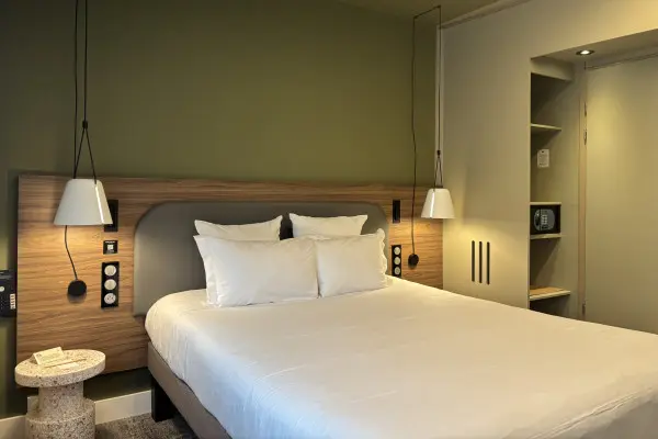 Suite de 30m² entièrement rénovée en 2024, lit double, canapé, TV avec chromecast, kitchnette avec mini réfrigérateur / bouilloire / Nespresso / micro-ondes. WC séparés, salle de bain équipée d'une douche ET d'une baignoire séparées, produits d'accueil RITUALS.Buffet complet à volonté de 6h à 11h chaque week-end. Salé, sucré, produits locaux, charcuterie, fromages, fruits, pains, viennoiseries, pancakes, crudités, etc…