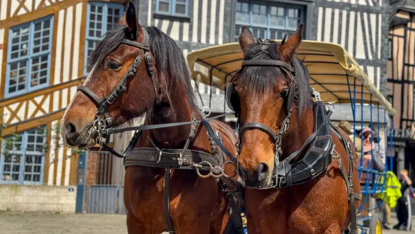 Gamin et Gibus, les cobs normands aussi gentils que puissants, donneront le rythme d’une visite qui sort de l’ordinaire.